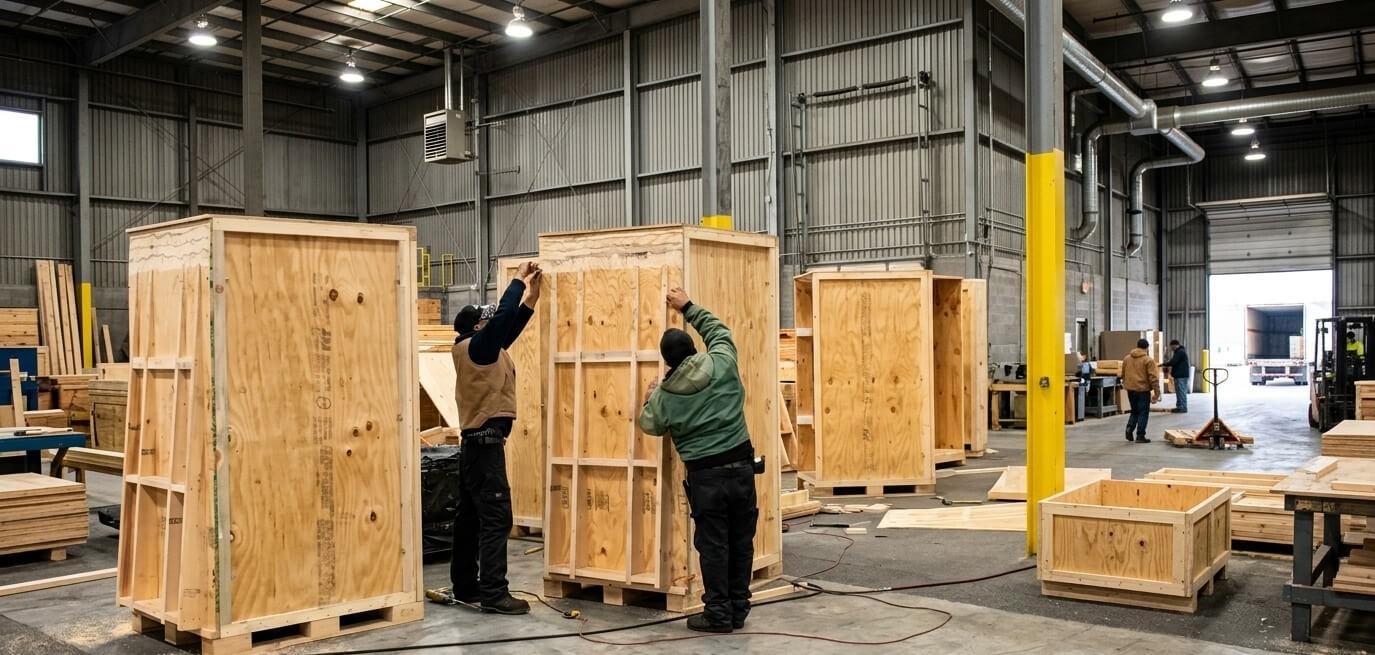 Noor Wood Works specializes in custom wooden packaging for industrial shipments across Saudi Arabia and Bahrain. We manufacture wooden boxes, plywood boxes, and custom wooden pallets designed to protect machinery, equipment, and fragile cargo. All products meet Aramco 8314-00 standards and include ISPM-15 export certification for compliant international shipping.