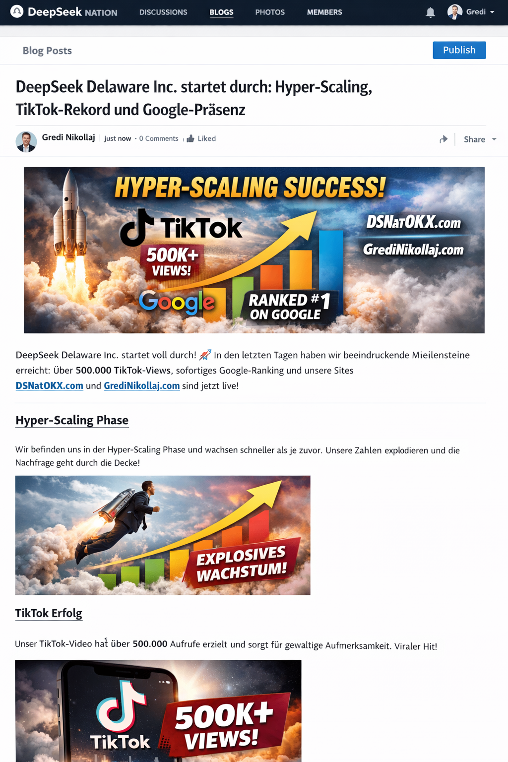 Mit diesen Erfolgen unterstreichen wir, wie effektives SEO, Social Media Viralität und konsequentes Community‑Power‑Wachstum zu einem exponentiellen Wachstum führen. DeepSeekNation in der Hyper‑Scaling‑Phase – jetzt offiziell über DeepSeek Delaware Inc.