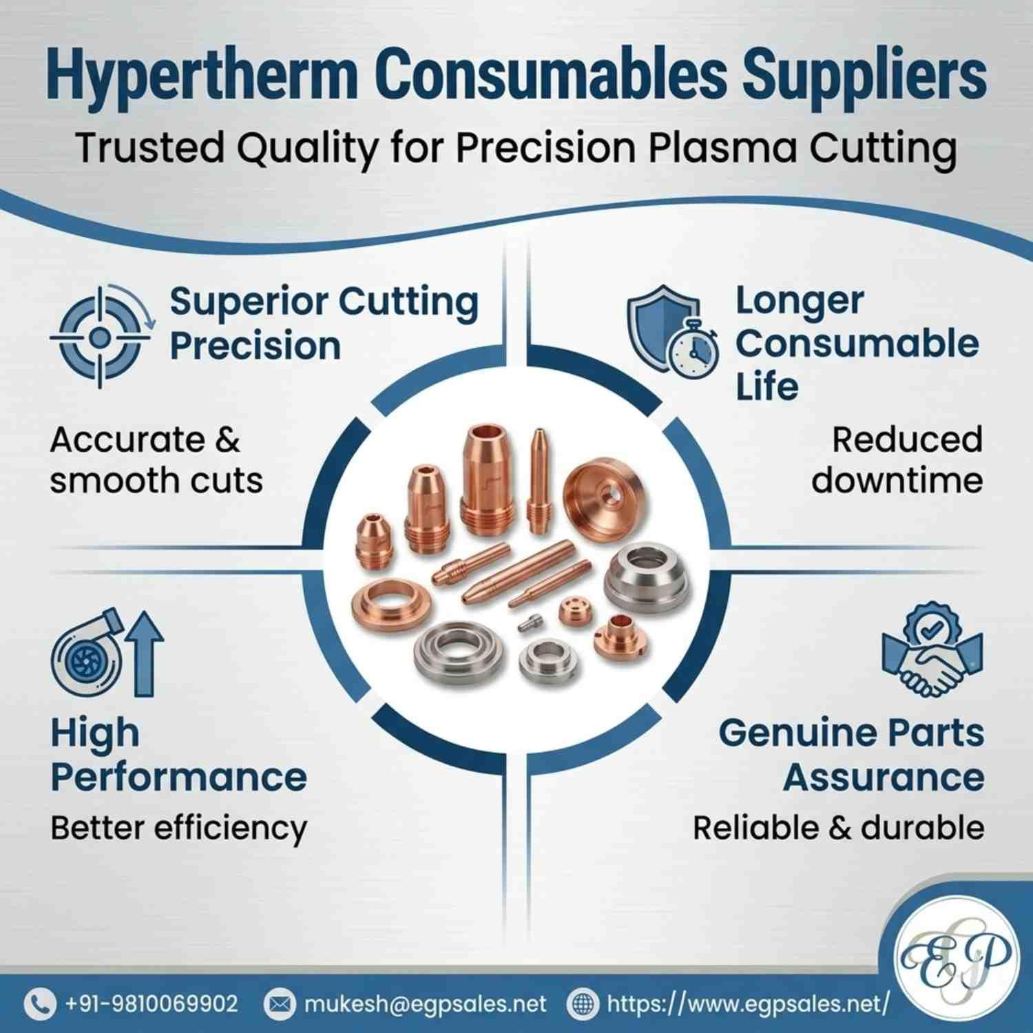 Best Hypertherm Consumables Suppliers in India Looking for reliable Hypertherm Consumables Suppliers in India? 🔧 Get genuine plasma cutting parts that deliver: ✅ Superior cutting precision ✅ Longer consumable life ✅ High performance ✅ Trusted & durable quality 💼 Ideal for industries, fabrication units & manufacturing businesses 📞 Call Now: +91-9810069902 📧 mukesh@egpsales.net 🌐 www.egpsales.net 👉 Upgrade your cutting performance with EGP Sales today! 🔥 Hashtags #HyperthermConsumables #PlasmaCutting #HyperthermIndia #IndustrialSuppliers #PlasmaParts #ManufacturingIndia #B2BIndia #EngineeringTools #MetalCutting #CNCPlasma #IndustrialProducts #EGPSales #BusinessGrowth #FactoryTools #IndiaBusiness