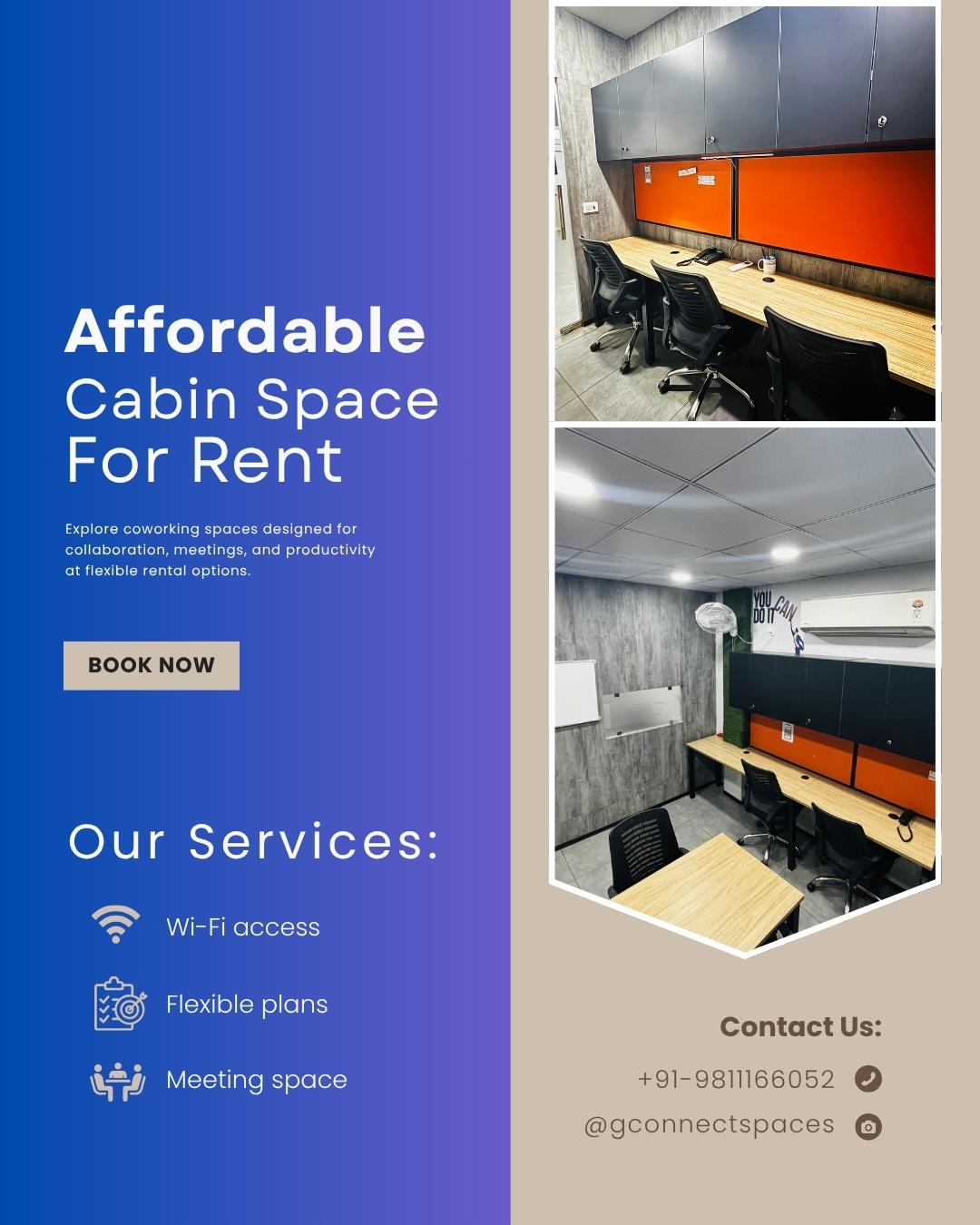 Looking for a private cabin for rent in West Delhi? G Connect Spaces in Mayapuri offers fully-equipped cabins designed for productivity and comfort. Perfect for professionals and small teams, our cabins come with high-speed internet, ergonomic seating, and a peaceful work environment. Experience the best coworking space in West Delhi tailored to your business needs!